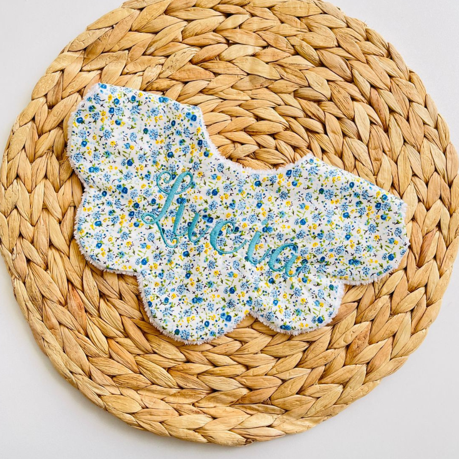 Protege la ropita de tu bebé con estilo y comodidad. Este babero está confeccionado en algodón de importación, suave y de alta calidad, ideal para personalizar con el nombre de tu pequeño y convertirlo en un accesorio único.