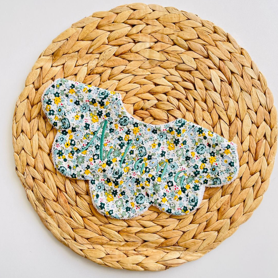 Protege la ropita de tu bebé con estilo y comodidad. Este babero está confeccionado en algodón de importación, suave y de alta calidad, ideal para personalizar con el nombre de tu pequeño y convertirlo en un accesorio único.