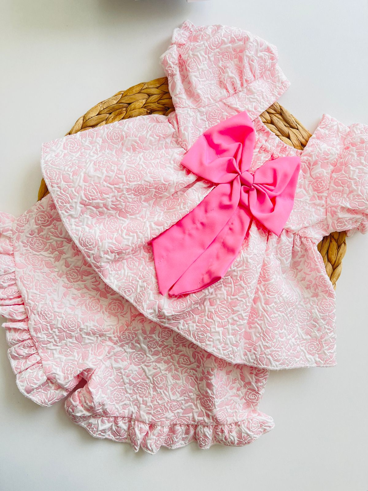 Su diseño clásico con detalles delicados lo convierte en una prenda versátil y elegante, perfecta tanto para el día a día como para ocasiones especiales. El cierre práctico facilita vestir y cambiar al bebé sin complicaciones, mientras que su textura ligera cuida la piel sensible.